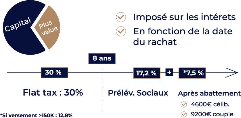 Assurance Vie C'est quoi ? Ouvert auprès d'un assureur Un outil d'investissement L'argent toulours disponible Accessible à tous et sans limite de contrat Fonctionnement Capital Garanti Rendement modéré Actions, produits structuré, immo, etc. Risque de perte en capital Frais Frais de versement Frais de gestion Frais d'arbitrage Frais de sortie Succession Choix libre des bénéficiaires Capital transmis hors succession Fiscalité